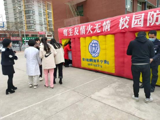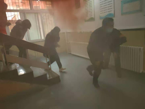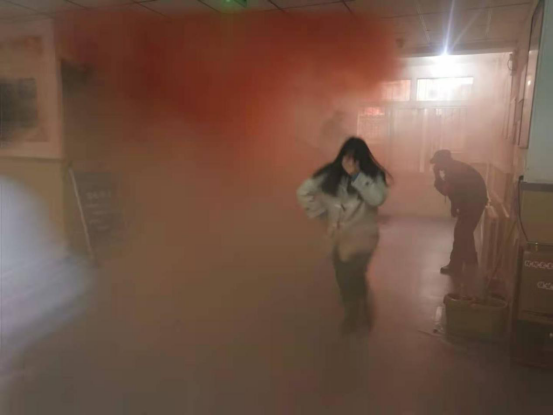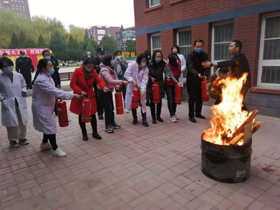同时组织学生和老师共同参与了火灾逃生演练,灭火器,灭火毯的使用方法。