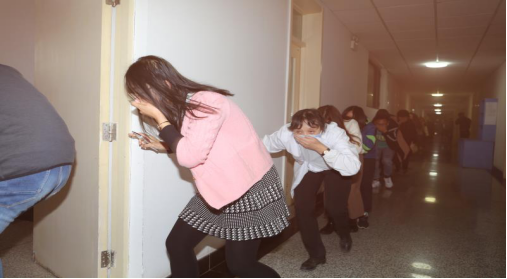 演练从16时正式开始,“燃放烟雾弹、拉响火情警报、发布疏散通知,安全引导员引导楼内人员疏散至安全地带”,5分钟内楼内人员全部疏散完毕。学院师生还在学院北门小广场实地演练了火场救援、灭火和火场模拟逃生。消防教官还集中讲解了消防灭火及应急疏散自救逃生知识及操作要领,全部演练共持续约35分钟。