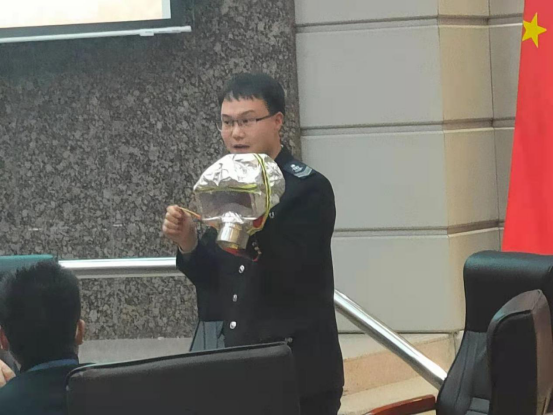 宣传人员还仔细讲解了灭火器的认识及使用方法,空气呼吸器的使用方法。让老师们都能正确了解使用最常见的灭火器材。