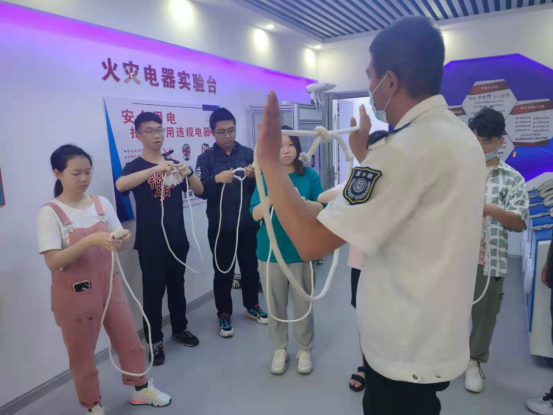 此次培训主要以安全教育基地现有设备,结合日常生活常见的事故灾害案件,邀请专业救援人员开展了有针对性的培训。通过开展逃生绳索使用、灭火器、心肺复苏、逃生通道紧急疏散等内容,让基地“小教员”先一步懂得更多的安全知识,提升安全工作宣传能力,然后再传播给更多的同学,提高大学生们的安全意识和防范能力。