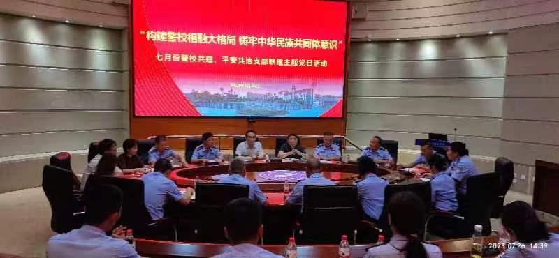 7月26日下午14:30,在正德楼国际会议厅,保卫处党支部、学生处党支部、兴庆区公安分局政治处党支部、治安大队党支部、政保大队党支部、文化街派出所党支部、月牙湖乡派出所党支部,联合召开主题为“构建警校相融大格局 铸牢中华民族共同体意识”警校共建、平安共治支部联建主题党日活动,学校党委委员、副校长史金龙参加并讲话,马克思主义学院勉嘉铖副教授应邀讲解专题党课。