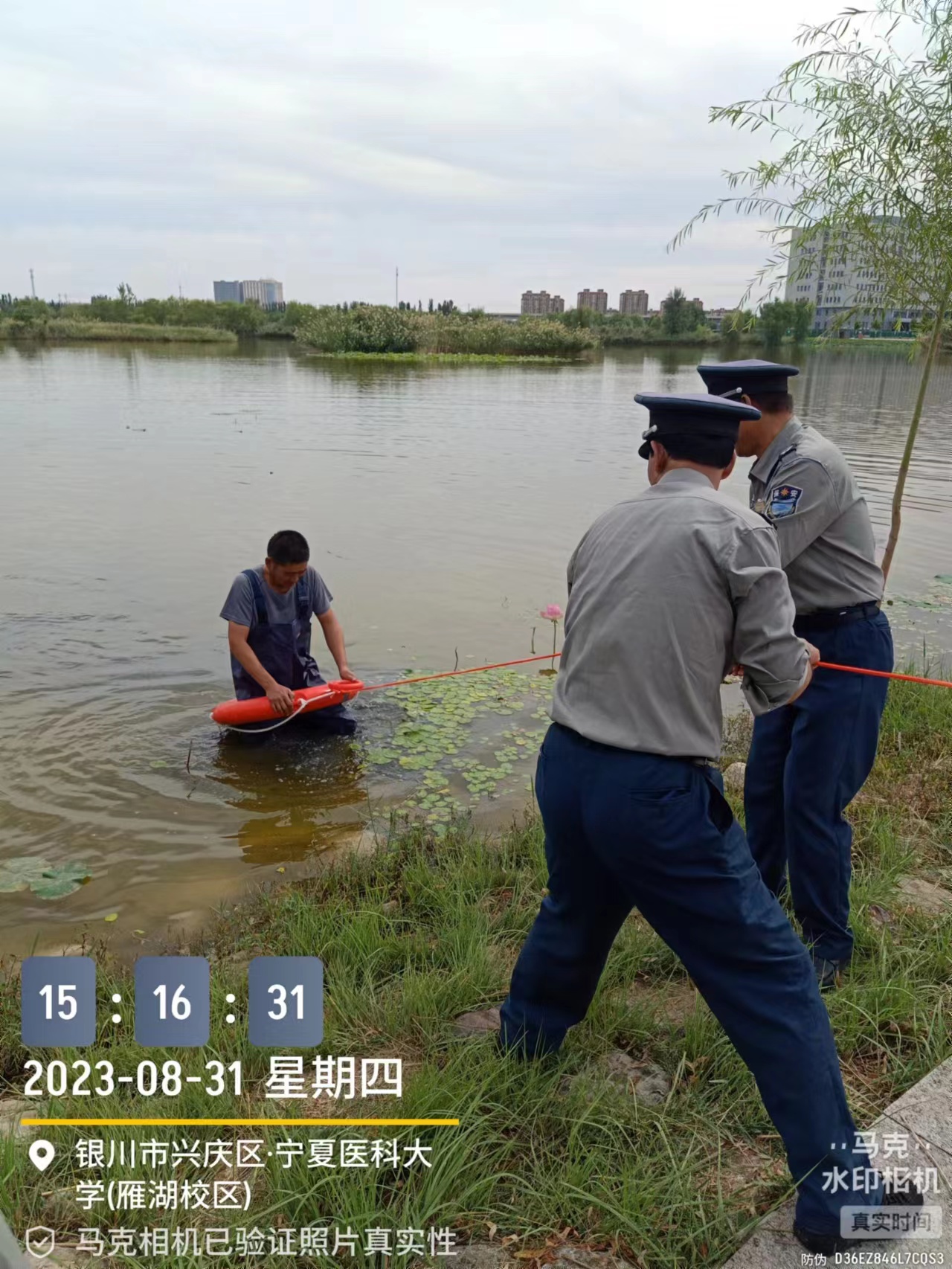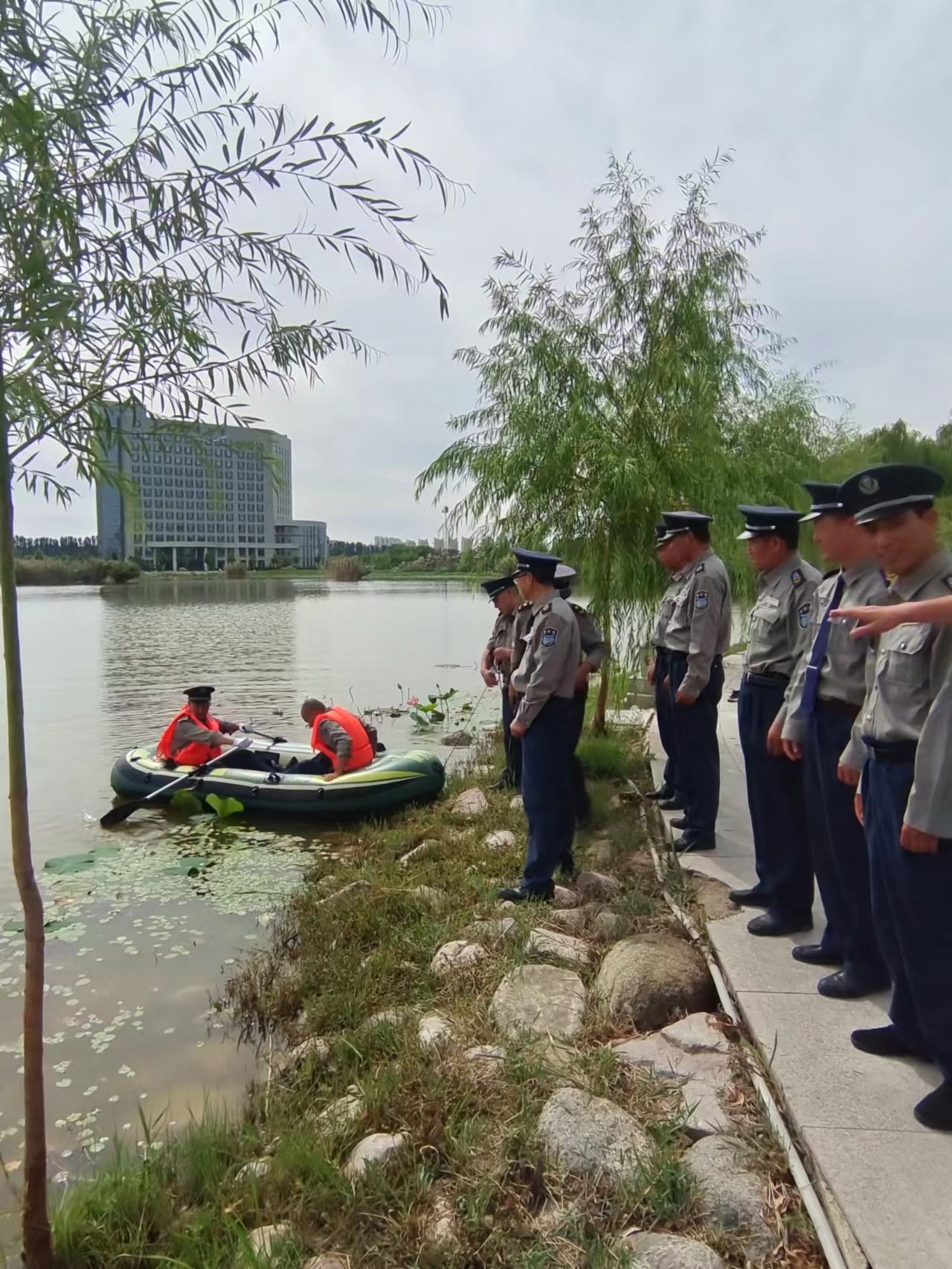 8月31日下午,保卫处组织中房保安10余人在雁湖校区小雁湖举行了防溺水救援实战演练。按照演练方案,组织救援人员在岸上进行救生圈、救生绳的抛投训练及救援配合技术训练,随后开展了落水人员的施救,利用救援柜里配置的救生圈、救生绳、救生衣,水上救生橡皮船等救援器材迅速对落水者进行施救,成功将“落水者”施救上岸,并进行心肺复苏训练。