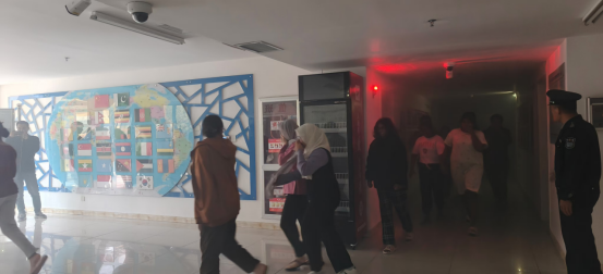 下午16:30分,随着消防警报的拉响,演练正式开始。师生们迅速响应,按照预定的疏散路线,在各楼层疏散引导员的指挥下,师生弯腰低姿有序撤离。仅用时2分钟,全体人员便安全疏散至指定集合点。