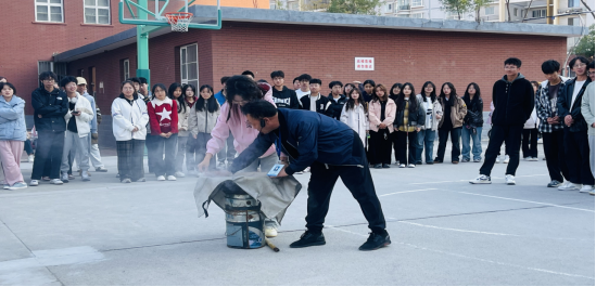 保卫处消防科杨俊康为新生们详细讲解了消防安全知识,包括火灾的预防、火灾种类以及不同灭火器的使用方法等,同时强调了火灾发生时保持冷静的重要性。