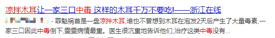 那新闻中的人为什么吃了黑木耳会中毒呢?就是因为黑木耳泡发或储存的方式不当,会产生一些细菌或霉菌的毒素,人食用了这样的黑木耳导致了中毒。