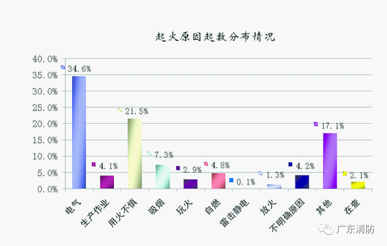 电 中国消防发布的相关火灾数据显示,2018年全国发生的火灾中,由电气原因引起的占总数的34.6%,占比最大!防