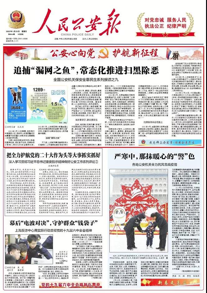 公安部刑事侦查局相关负责人表示,2022年是常态化扫黑除恶斗争深化推进的关键之年,公安机关将坚持以人民为中心的发展思想,坚持问题导向,不断加强与纪检监察等部门的协作配合,着力锻造高素质过硬公安铁军,推动扫黑除恶走深走实,确保城乡更安宁、群众更安乐,为党的二十大胜利召开创造安全稳定的政治社会环境。