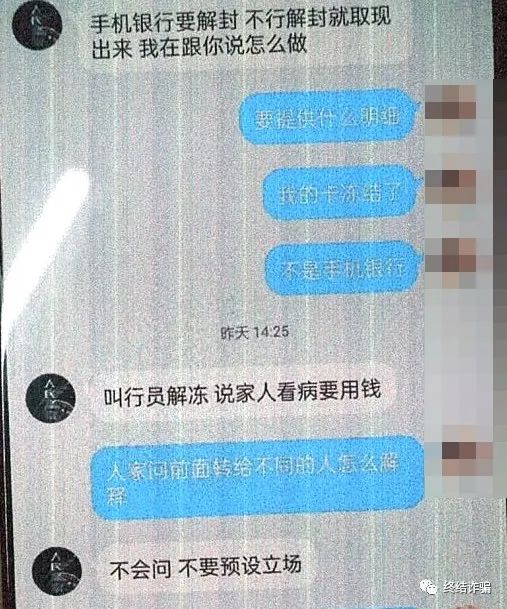 ▲诱导刘女士以家人生病需要解冻为由欺骗银行