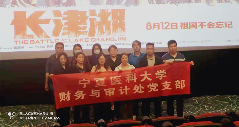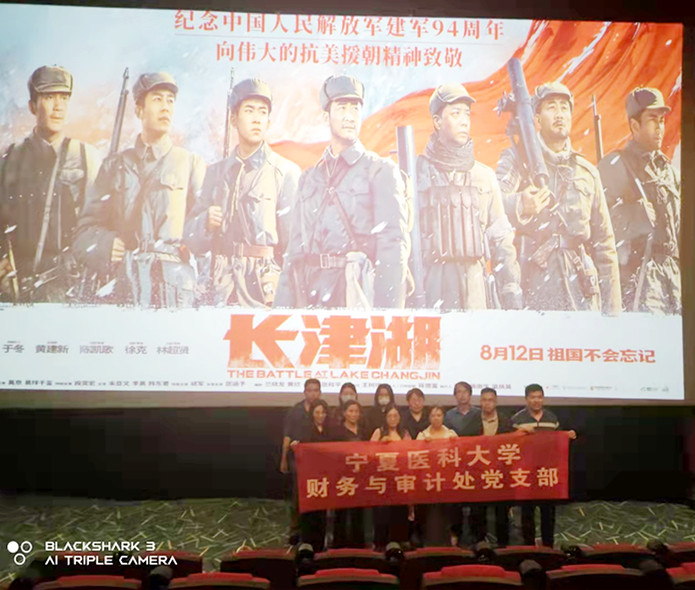 为庆祝中华人民共和国成立七十二周年、中国人民志愿军抗美援朝出国作战七十一周年,进一步扎实推进党史学习教育,弘扬爱国主义精神,增强团队凝聚力,财务与审计处党支部组织开展了一场以“学习‘七一’讲话,弘扬爱国精神”为主题的观影活动。2021年9月30日,财审处全体人员在北美国际影城,一道观看了抗美援朝电影《长津湖》。