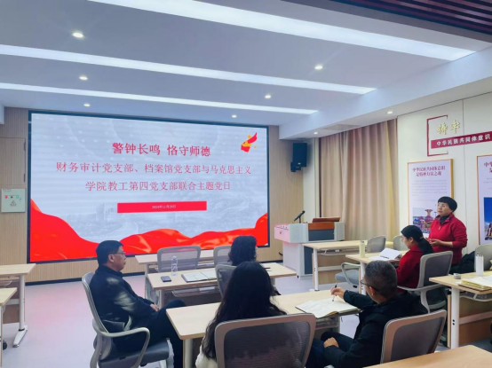 为深入学习贯彻党的二十大、二十届三中全会、习近平总书记视察宁夏重要讲话重要指示批示精神、自治区十三届七次、八次、九次全会精神,11月29日下午,财务审计党支部、档案馆党支部、马克思主义学院教工第四党支部联合开展警钟长鸣 恪守师德主题党日活动,各支部全体党员及积极分子参加此次活动。
