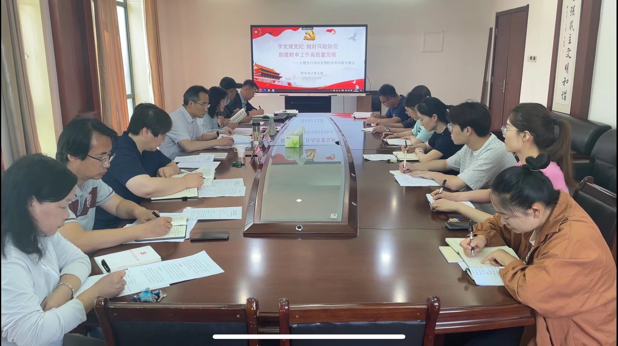 为进一步深入开展党规党纪学习教育,深刻领会党的纪律规矩、强化纪律意识,6月5日上午,财务审计党支部举办“学党规党纪 做好风险防范 助推财审工作高质量发展”主题党日活动暨预防业务风险专题会。纪委副书记孙冬梅,财务审计党支部全体党员及教职工参加活动。