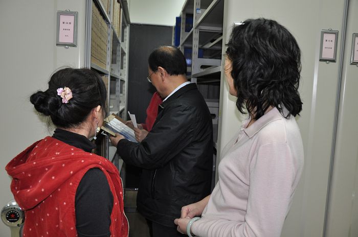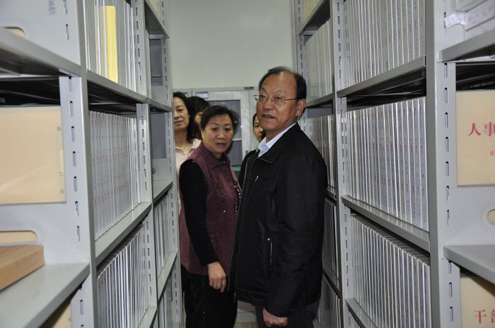 张发智书记还参观了已经归档好的基建档案与人事档案,并对档案馆建馆一年来的各项工作表示满意与充分肯定。