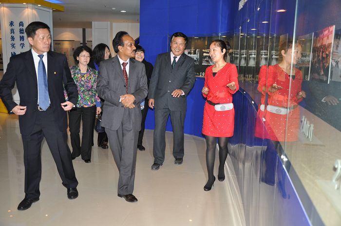 尼泊尔驻华大使坦卡·普拉萨德·卡基一行3人于2011年11月3日下午在田淑卿副书记和杨银学院长的陪同下参观了校史馆