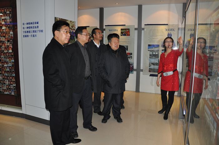 全区高校“为民服务创先争优”活动观摩交流会的领导于2011年11月29日下午在党委书记吴世彩教授的陪同下参观了校史馆