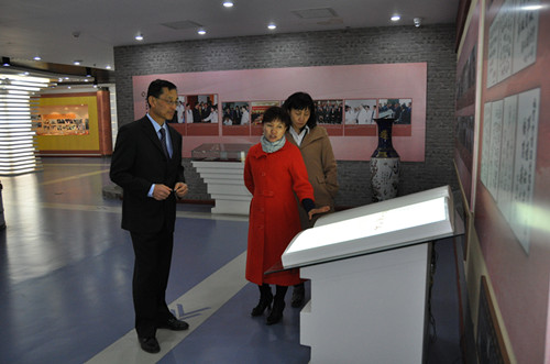 2017年3月10日下午,77级校友宋东江在档案馆馆长林俊英的陪同下,参观了校史馆。