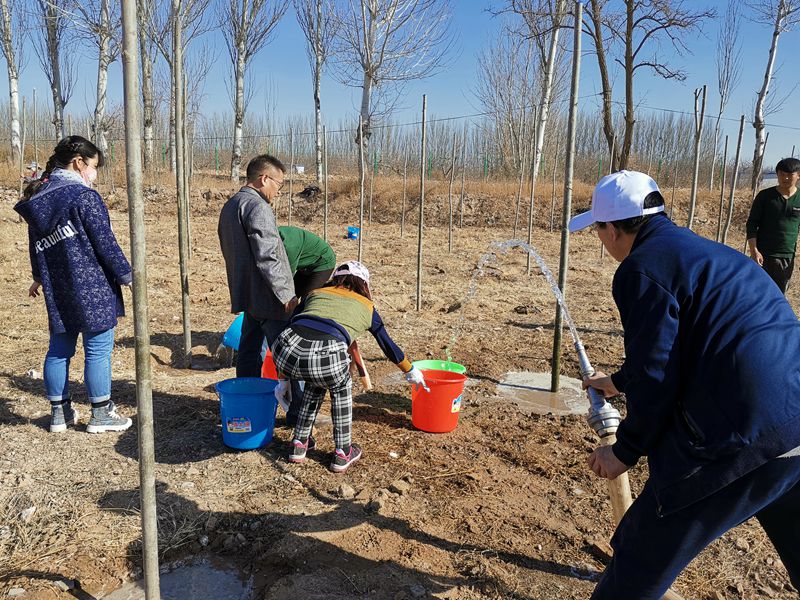 这次植树活动是由农工党宁夏区委会组织号召。到达现场后,孙维红副主委做了简要的组织安排,大家纷纷撸起袖子加油干,整个现场热火朝天,大家挥动锄头、挖坑填土、提桶浇水、扶苗踩实、取水灌溉,几个小时就栽下140余株树苗。天色将晚,看着自己的劳动成果,每个人都露出了欣慰的笑容。