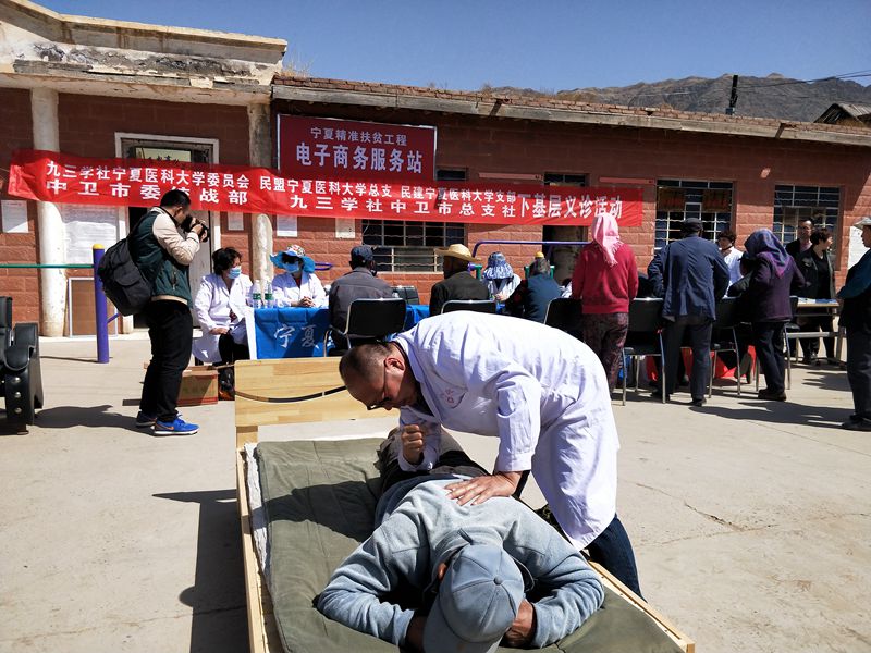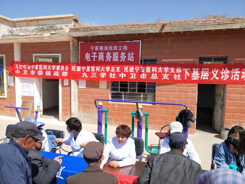 为了发挥服务社会职能,践行送医送药到百姓身边的健康扶贫理念,同时,也为了民主党派人士更多的了解社会、开阔眼界,2019年4月13日-14日,学校党委统战部组织九三学社伟德国际1946源于英国委员会、民建伟德国际1946源于英国支部和民盟伟德国际1946源于英国总支联合九三学社中卫市总支社利用周六、周天在中卫市中医院和南长滩村开展了两场“送医送药到百姓身边”的社区健康义诊活动,并发放了药品和健康宣传册。接待当地居民200余人次,共计36位医护人员参加了义诊活动.本次活动得到学校和民建区委会的高度重视,在经费上给予了大力支持。义诊活动还受到中卫市统战部和九三学社中卫市总支社的支持和帮助。