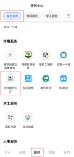 (3)点击【我的服务】,查找【流程服务大厅】,点击进入。