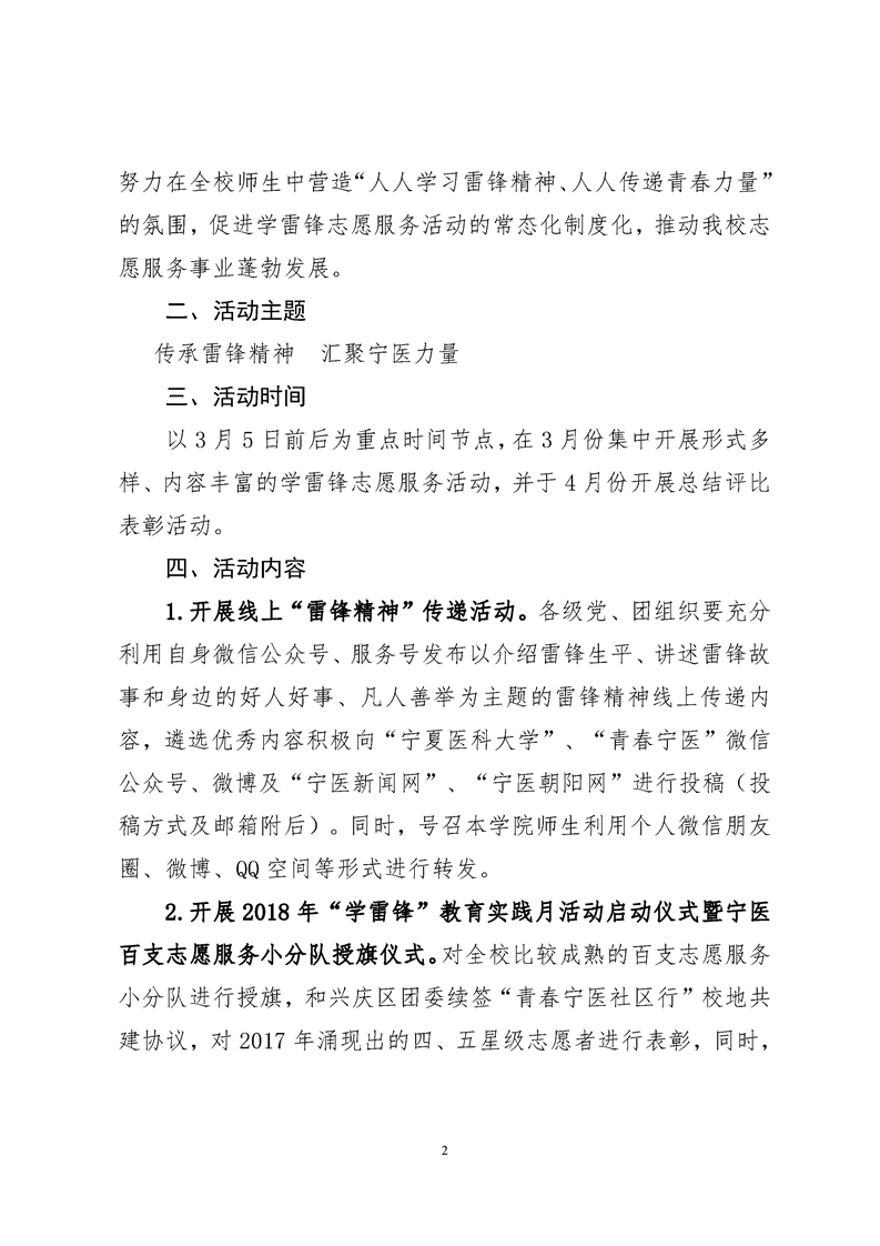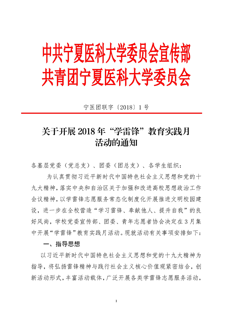 宁医团联字〔2018〕1号 关于开展2018年“学雷锋”教育实践月活动的通知