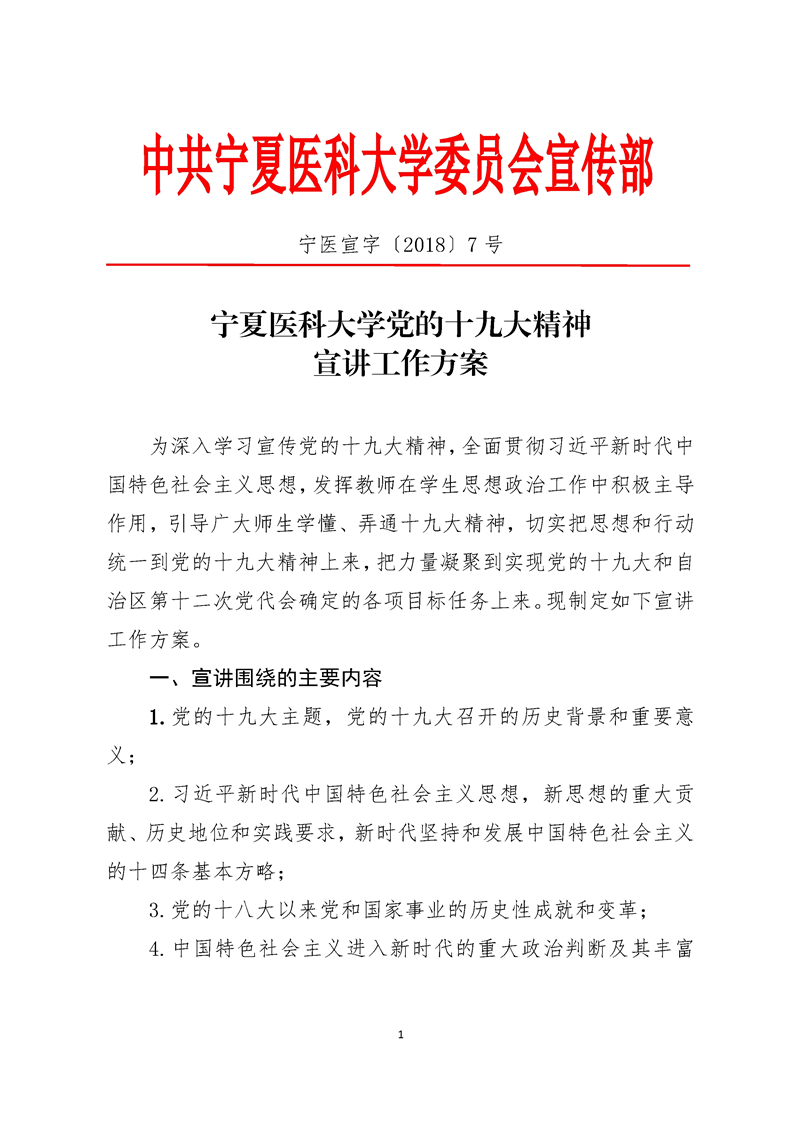 宁医宣字〔2018〕7号 伟德国际1946源于英国党的十九大精神宣讲工作方案