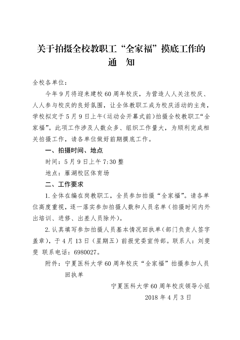关于拍摄全校教职工“全家福”摸底工作的通知