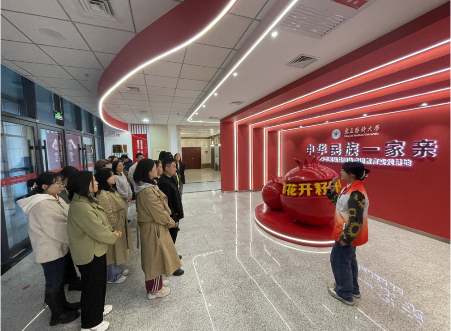 活动中,在学校“红石榴”宣讲团的讲解下,大家依次参观了教育实践基地的展厅,深入了解中华民族的历史文化、民族团结进步事业的发展历程以及宁夏地区的民族工作成就。