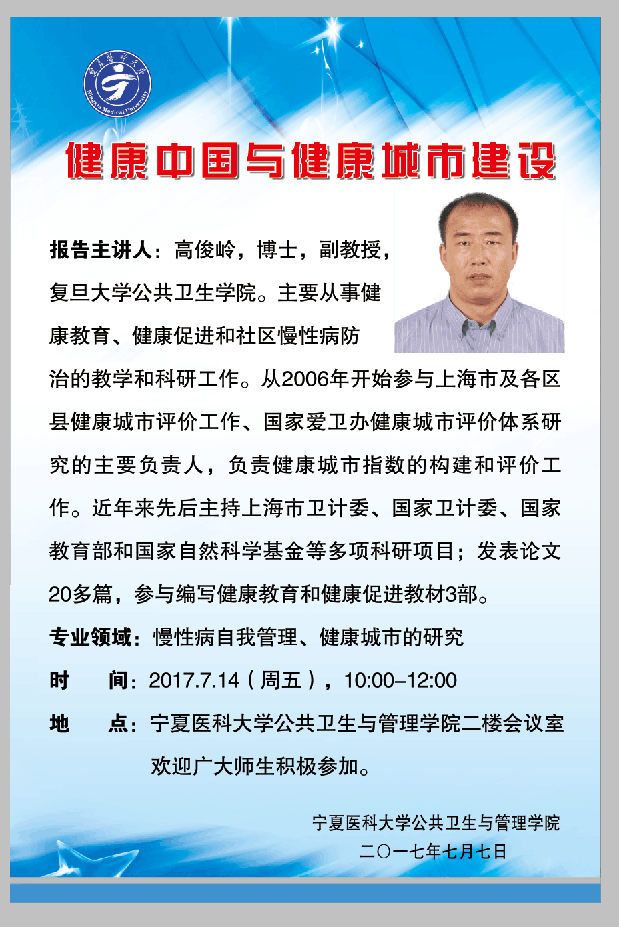 发布日期:2017-07-11 作者:公共卫生与管理学院 来源: 公共卫生与管理学院 点击: