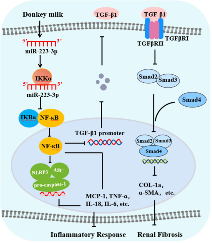 驴奶减轻CKD炎症反应和肾纤维化的可能机制图