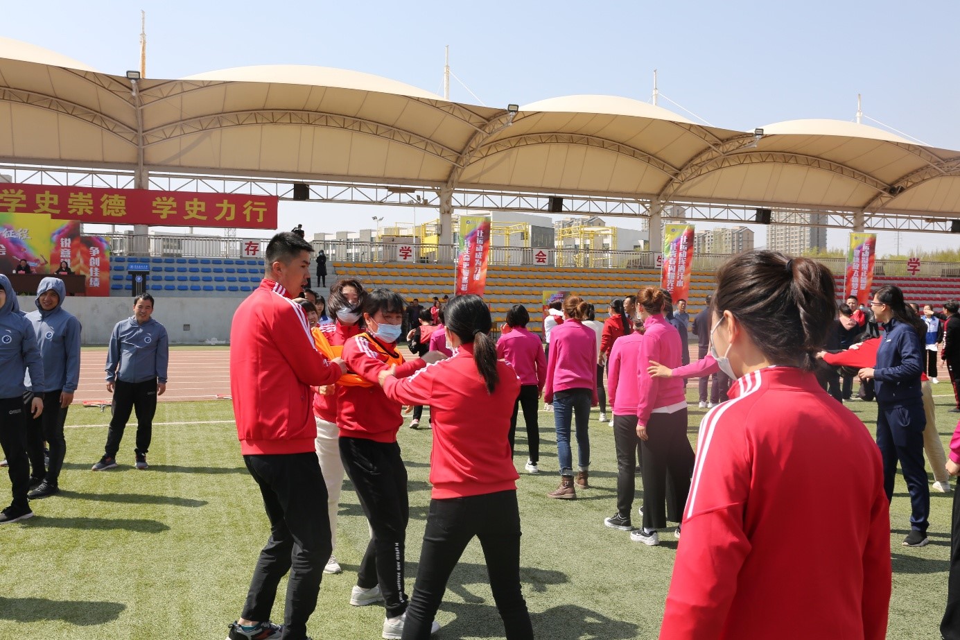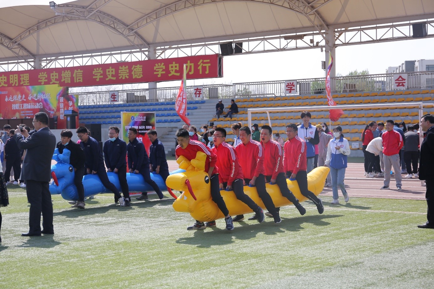为引导广大教职工关注身体健康,增强团队合作精神,公共卫生与管理学院组织教职工积极参加4月14日校工会主办的以“永远跟党走,奋进新征程”的教职工趣味运动会。