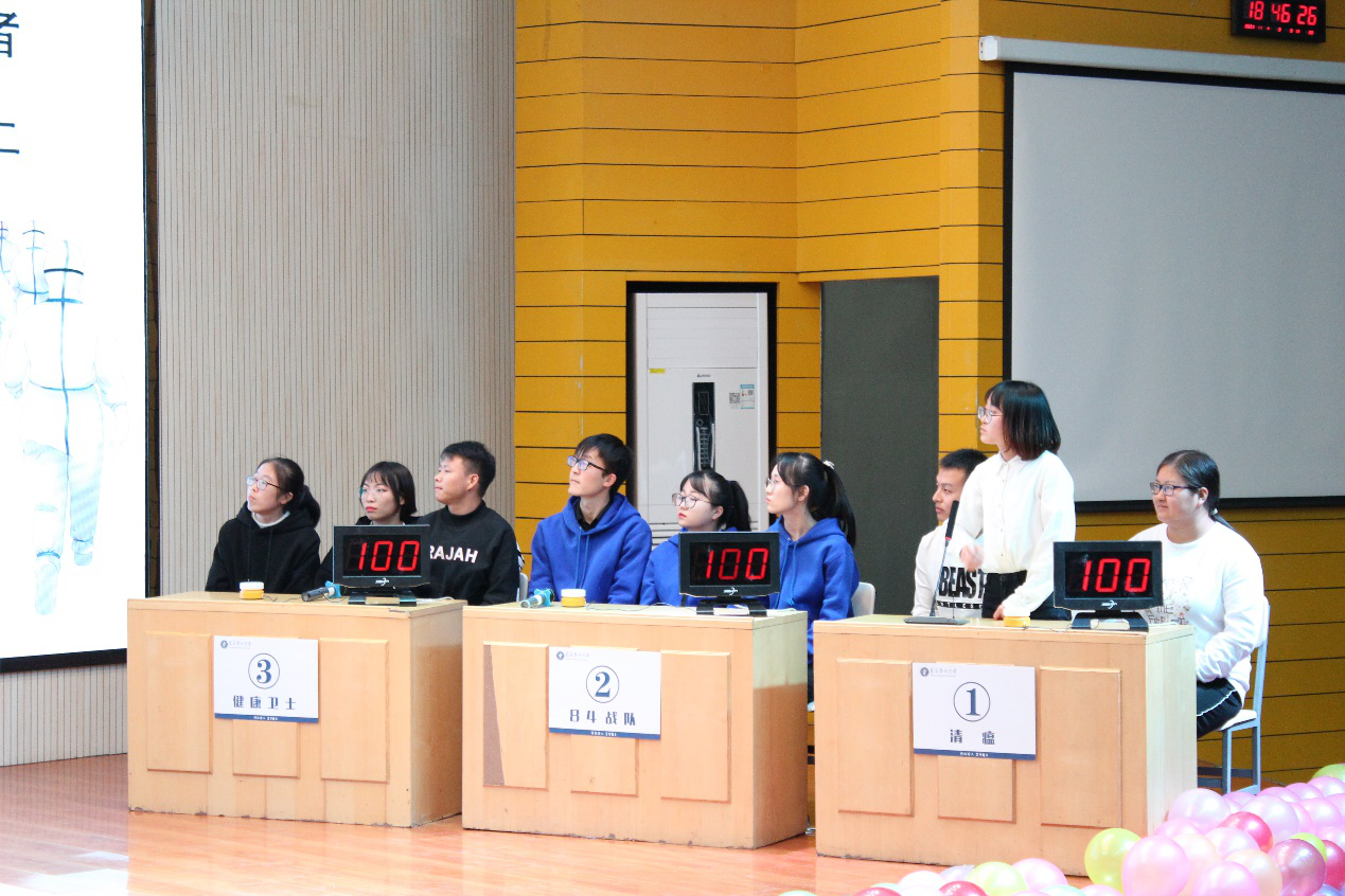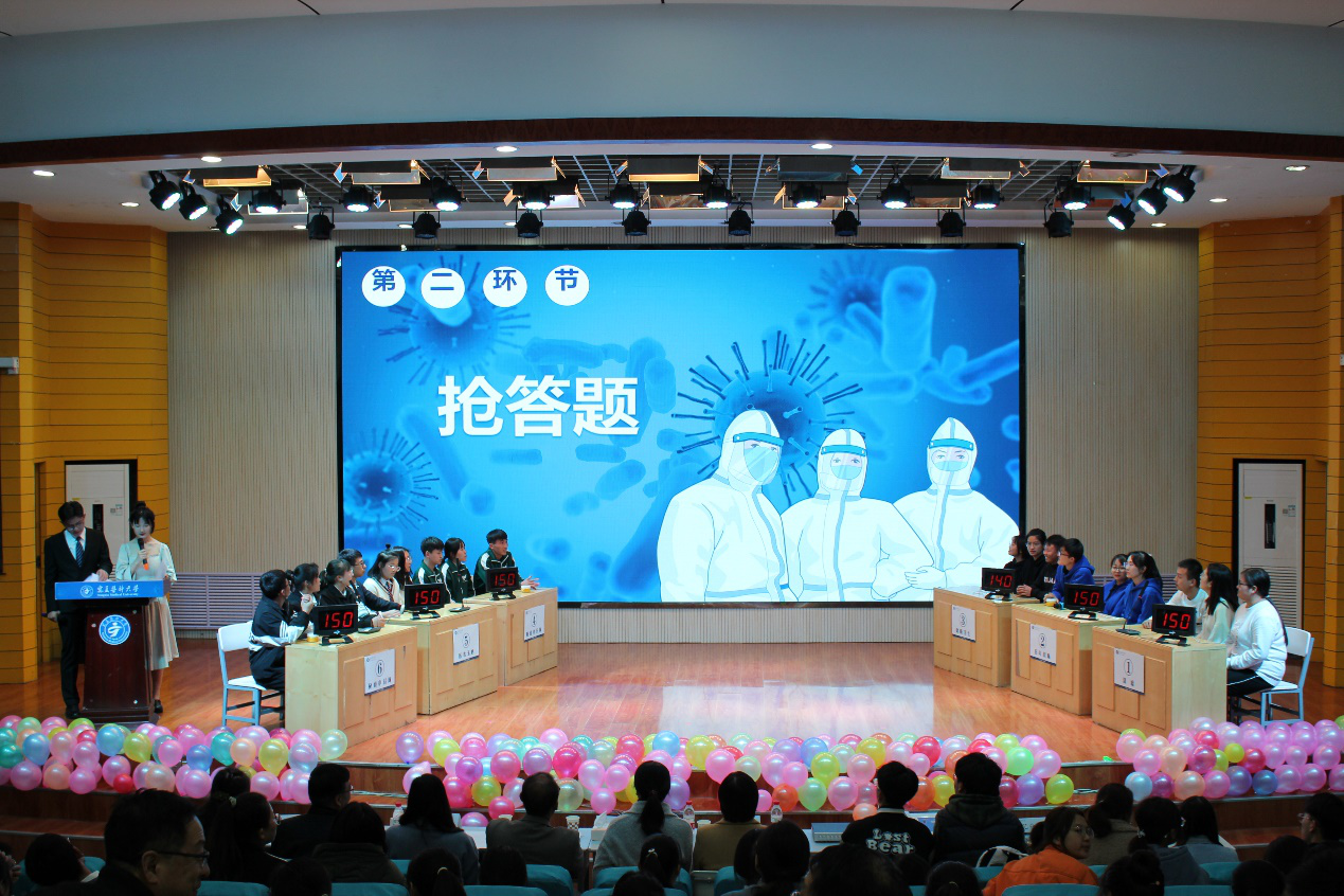 本次活动通过前期的初赛、复赛筛选,最终有2017级-2019级六支队伍进入决赛。此次知识竞赛共设必答题、抢答题、主观题和观众互动四个环节,每个环节都检验着选手们的知识储备和平时的学习成果。比赛现场的每个选手都踌躇满志,挥斥方遒,在紧张激烈的氛围中展开了一轮又一轮的知识大比拼。场下观众目不转睛地关注着场上的激烈知识比拼,积极地参与观众互动环节。最后,刘志宏副校长对活动进行点评,此次知识竞赛活动的主题既符合专业内容又贴切当下的疫情防控背景,号召全体师生加强传染病防控知识学习,为祖国的预防医学事业添砖加瓦。