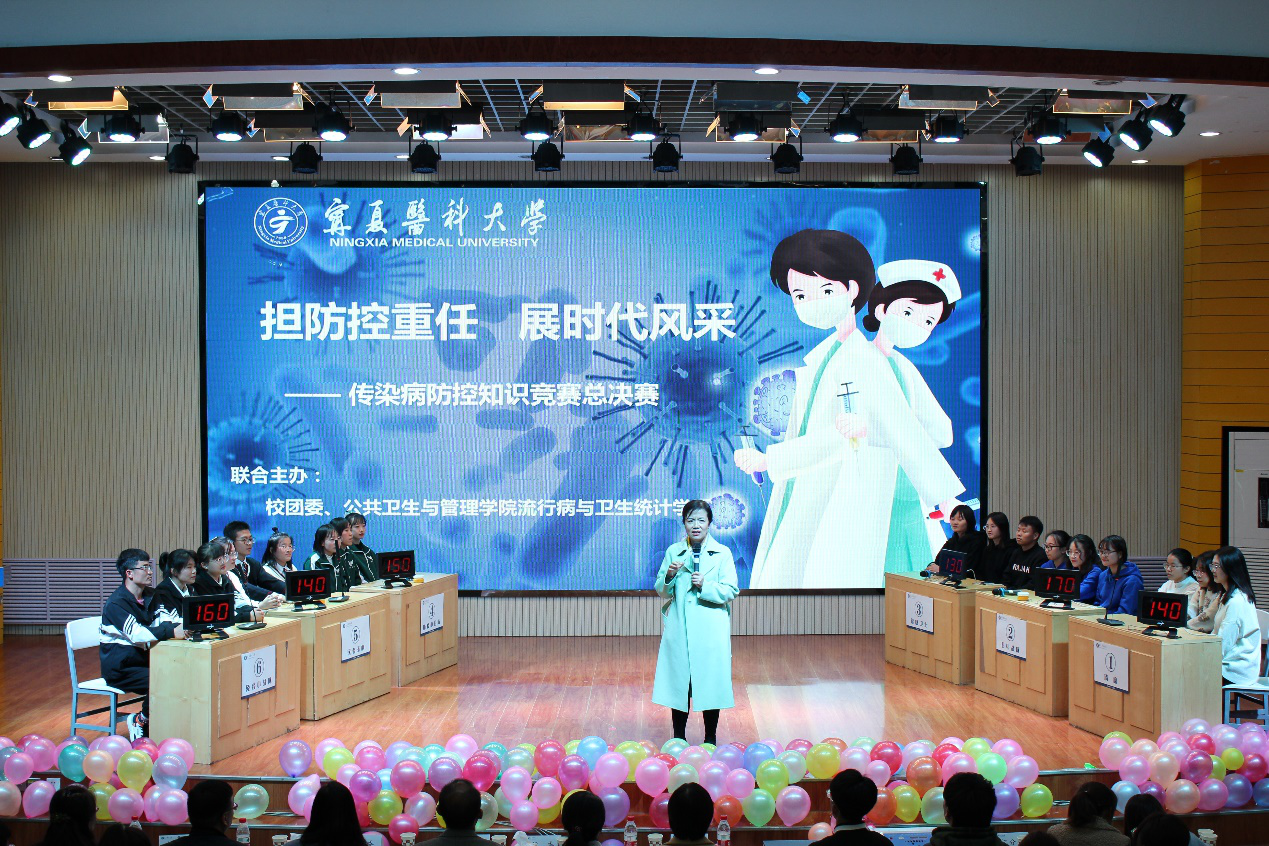 2020年11月4日公共卫生与管理学院在应谦教学楼启思学术报告厅举行“担防控重任,展时代风采”传染病知识竞赛活动。学校朱建华副书记、何仲义副校长、刘志宏副校长;教务处哈学军副处长、学生处李岩副处长、校团委刘河涛副书记、教师教学发展中心柳海军副主任、教学质量监控与评估中心韩怀钦主任、后勤管理处汤榕处长等部门领导及公共卫生与管理学院全体领导、老师和同学们参加了活动。