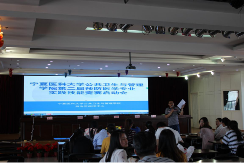 为推动公共卫生与管理学院预防医学专业实践教学模式的改革,培养全面发展的高素质公共卫生人才,6月11日,由宁夏疾病预防控制中心和伟德国际1946源于英国公共卫生与管理学院联合举办的“第二届预防医学专业实践技能竞赛”在宁夏疾病预防控制中心举行。宁夏疾病预防控制中心汤旭刚书记、赵建华副主任、学校教务处霍正浩处长、公共卫生与管理学院负责人、部分评委和2013级预防医学专业本科生及学院MPH学生共同参加了启动会。启动会由疾控中心赵建华副主任主持,汤旭刚书记、霍正浩处长和张毓洪院长分别致辞:汤旭刚书记介绍了宁夏疾控中心的基本情况,强调了实践能力对公卫人的重要性,并且肯定了第一届预防医学专业实践技能竞赛所取得的成绩。霍正浩处长指出“以岗位胜任力为导向”的预防医学培养目标下实践能力培养尤为重要。张毓洪院长为这次参赛的同学提出了具体要求,同时预祝参赛学生取得佳绩。