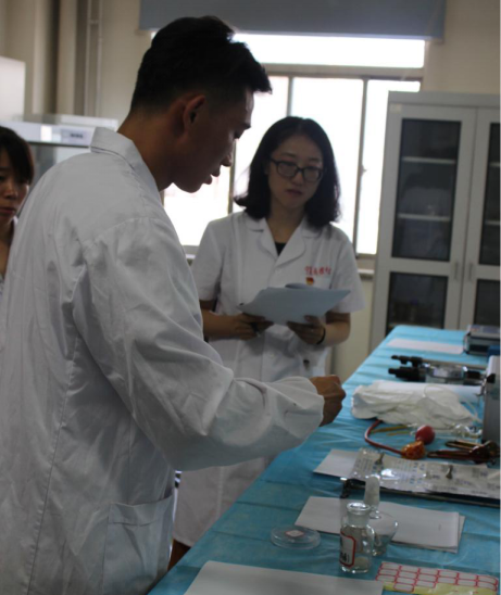 宁夏疾病预防控制中心组织现场经验丰富,实践能力好的资深专家担任培训教师和评委,赛前学院学生办和教学办积极做好学生的参赛动员工作。竞赛采用三站式考试:第一站:临床基本技能;第二站:案例分析;第三站:现场检测/样品采集、卫生处理/个人防护,个人最终成绩为三站成绩总和。