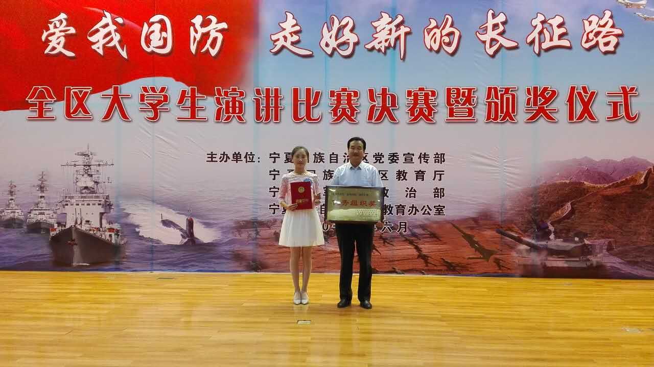 为纪念中国人民解放军建军90周年,营造爱国强军的大学文化和社会氛围,6月16日,由自治区党委 宣传部、宁夏军区司令部、自治区教育厅、宁夏国防教育办公室联合主办的“爱我国防走好新的长征路”全区大学生演讲比赛决赛暨颁奖仪式在神华宁煤会议中心顺利举行。