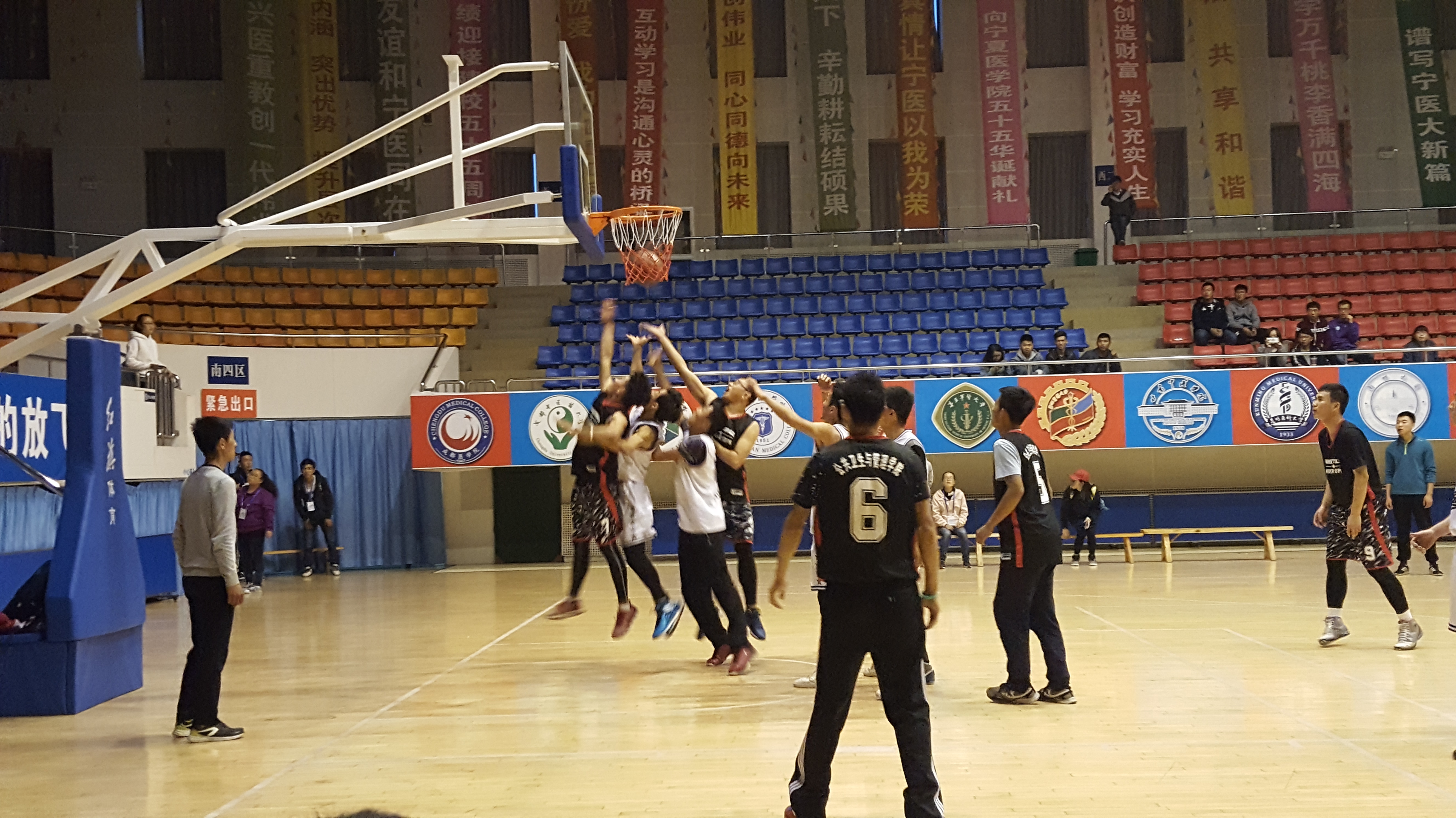 10月21日,学校第十届男子篮球赛第三、四名争夺赛在雁湖校区弘毅体育馆内举行。本次争夺赛的对阵双方分别是公共卫生与管理学院篮球队和药学院篮球队。