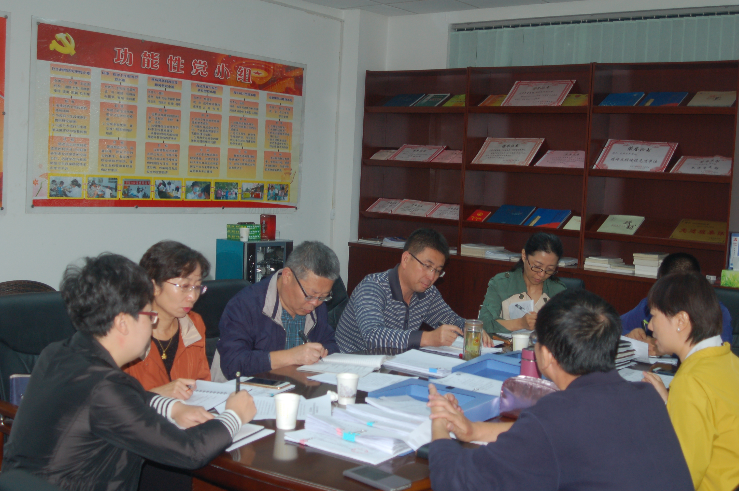 期间校办张晓奇主任、组织部吴华副部长、宣传部李颖副部长、纪委魏晋怡副书记查阅了学院开展党建工作的相关资料,并对学院班子成员进行了党的知识的理论测试。