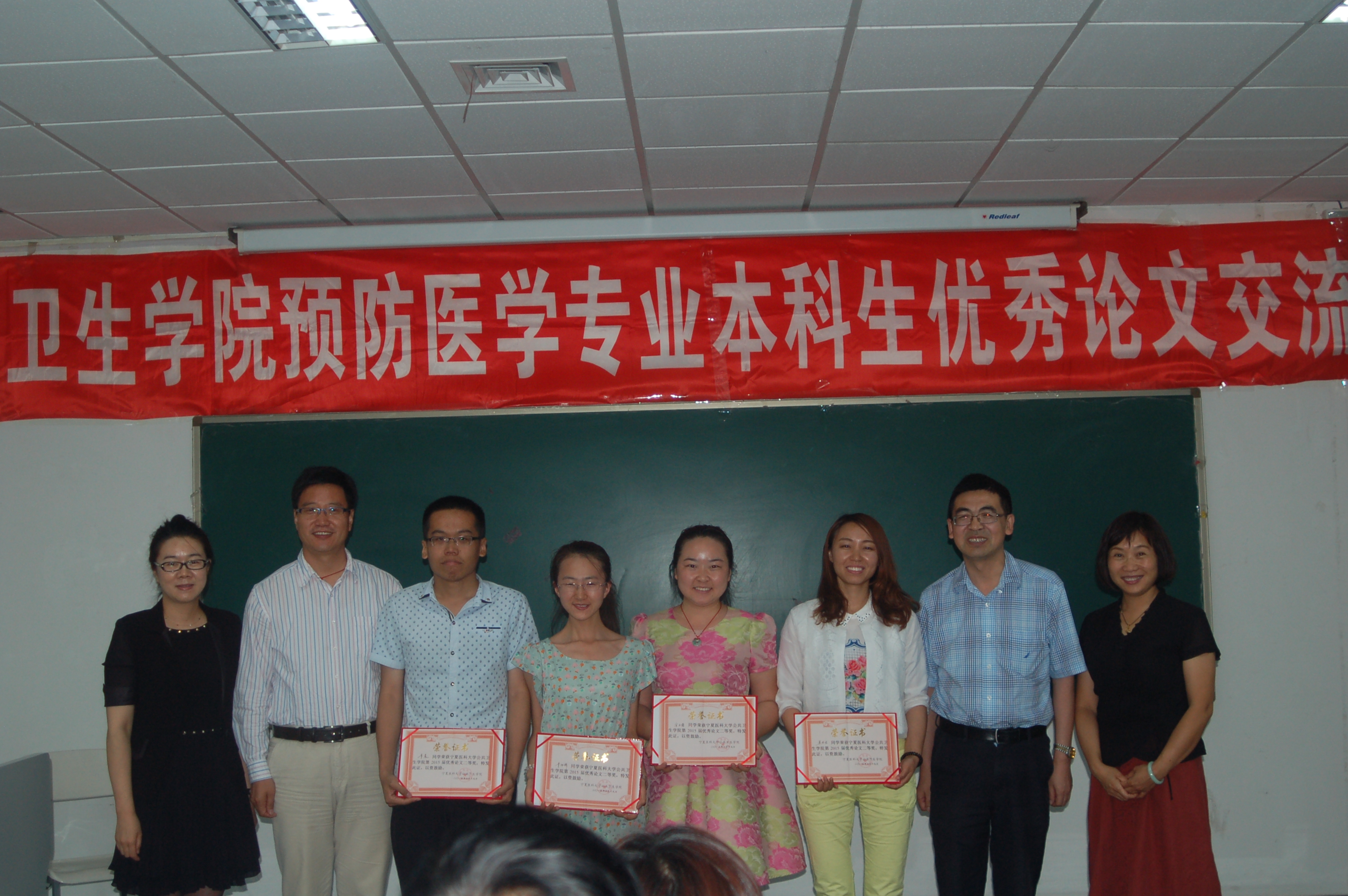 本科生毕业论文专题实习是预防医学本科培养目标的重要组成部分,也是教学计划中的一个综合性实践教学环节,目的在于对学生的知识能力进行全面考核,培养学生综合利用所学专业知识和技能分析、解决实际问题的能力,为学生以后进行专业方面研究打下一定的基础。本次交流的12篇优秀论文是从学院各系(教研室)、自治区疾病与预防控制中心112篇答辩论文中推荐上来的,具有理论性、应用性和创新性。交流会现场气氛热烈融洽、师生上下互动,经过评委老师的现场评审,评出一等奖2名、二等奖4名与、三等奖6名,与会领导分别为获奖的学生颁发奖状,并与同学们合影留念。
