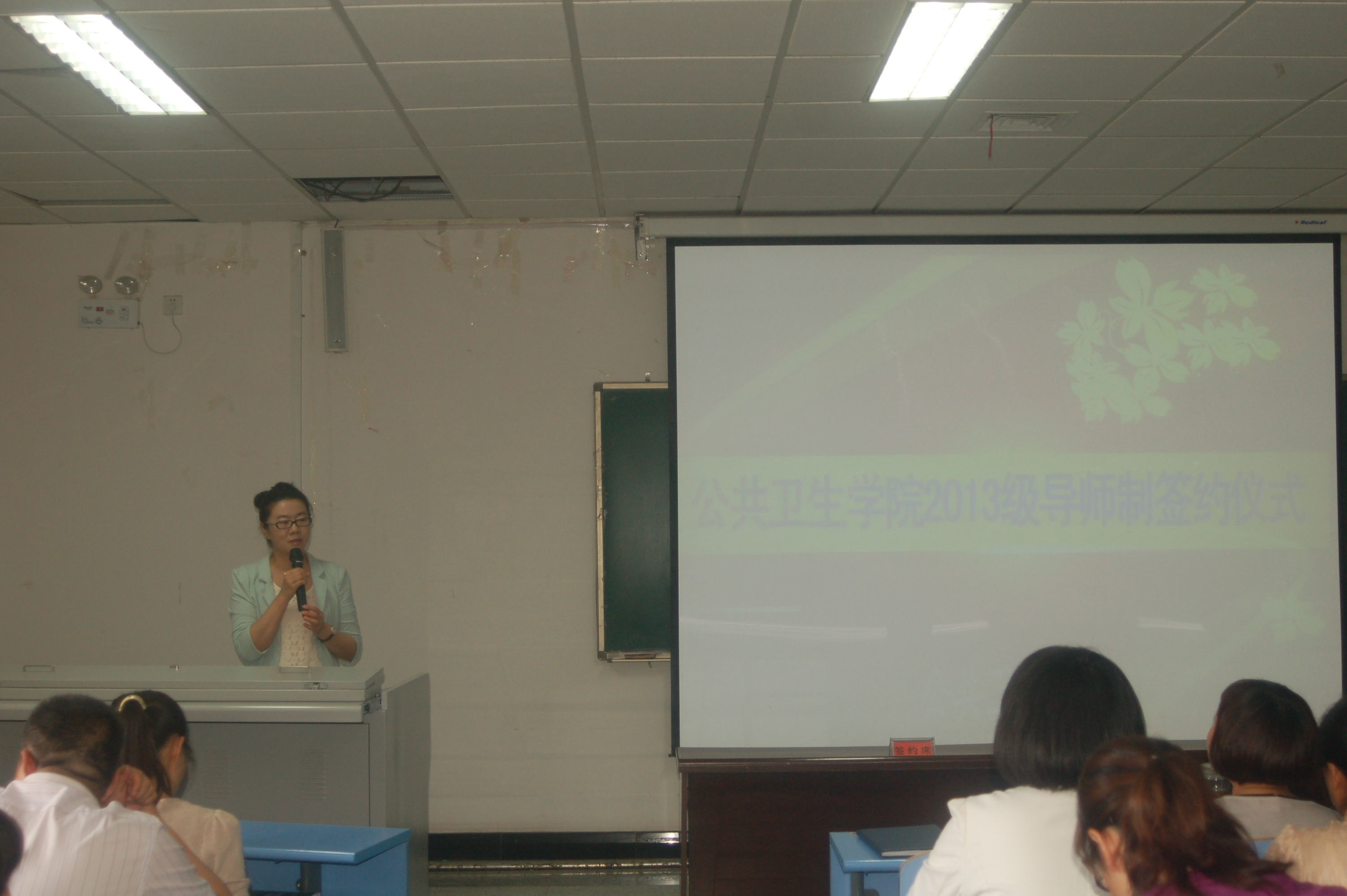 5月23日下午,公共卫生学院2013级预防医学专业本科生导师签约仪式在臻善楼阶梯教室举行。29位本科生导师和2013级74名全体学生参加了仪式。学院党总支书记杨惠芳、院长张毓洪、副院长杨建军、副院长乔慧参加了活动。