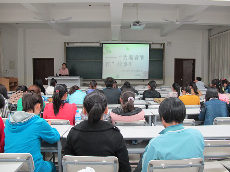 公共卫生学院团总支在2013年4月1日19:30在新校区教学楼214教室举行了以“为逝者缅怀”为主题的故事汇。