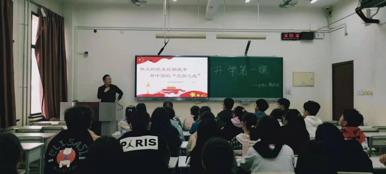 韩炜副书记为学生做“伟大的抗美援朝战争,新中国的立国之战”为主题的思政教育