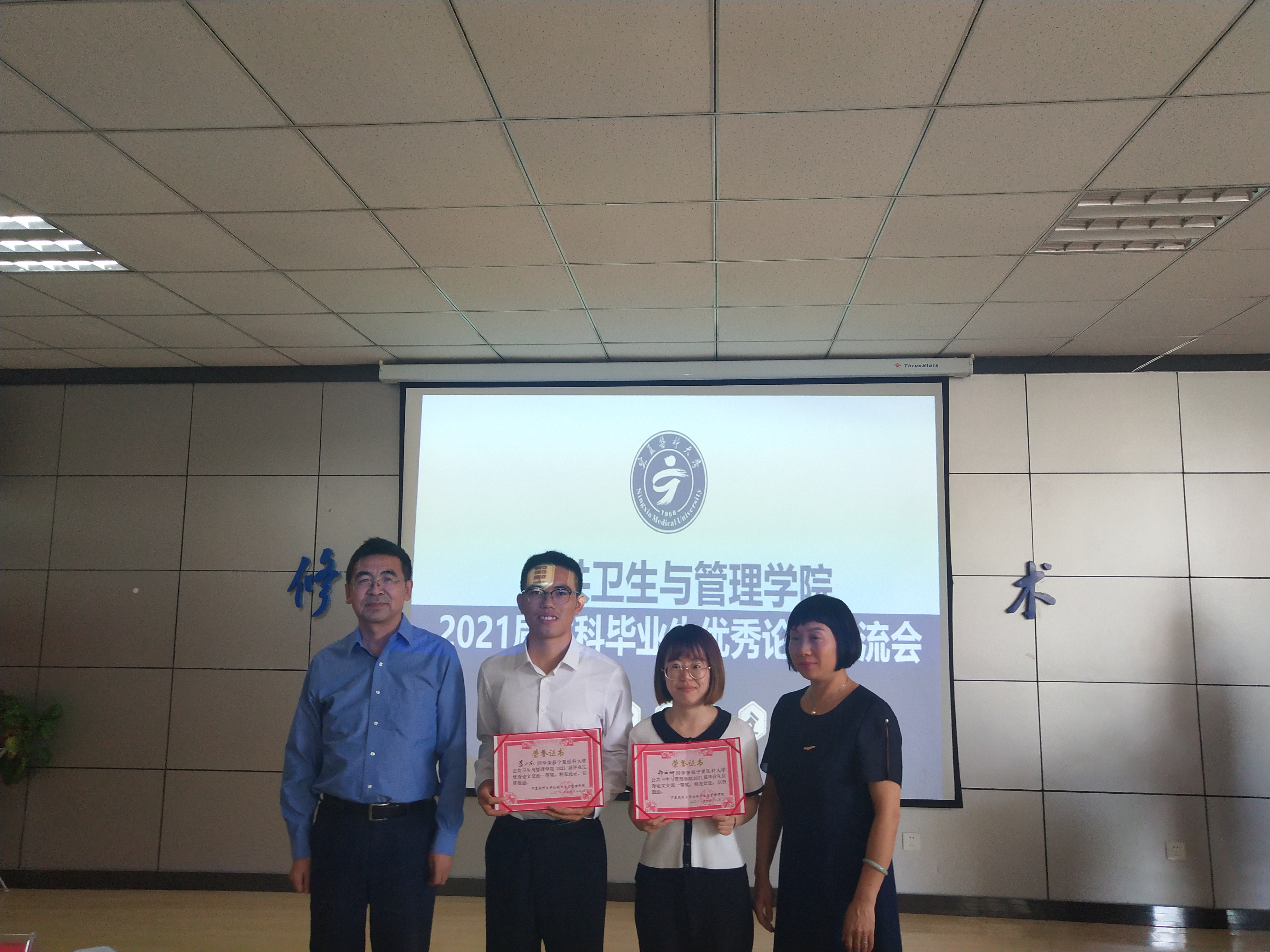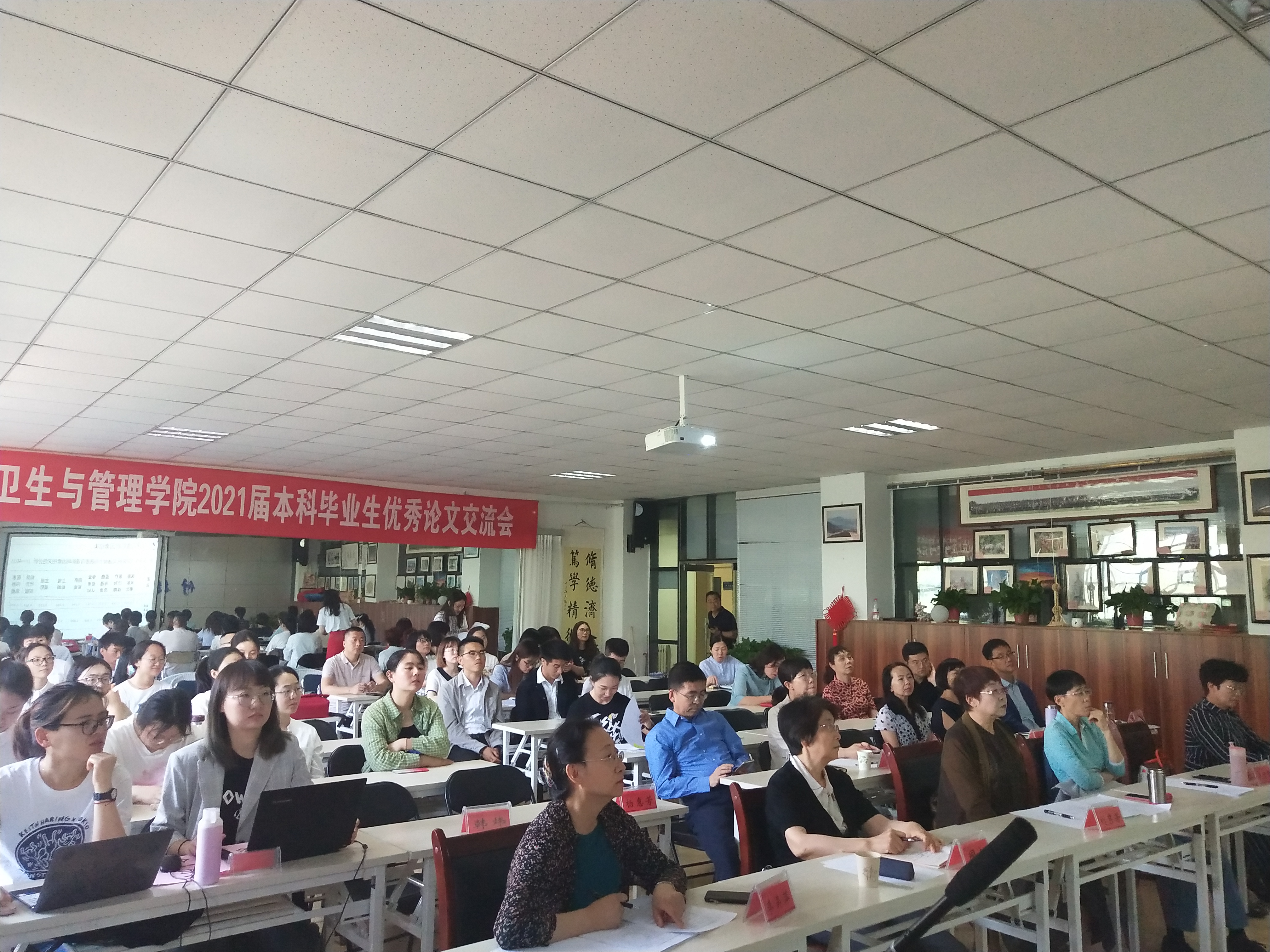 本科生毕业论文专题实习是学院本科培养目标的重要组成部分,也是教学计划中的一个综合性实践教学环节,目的在于对学生的知识能力进行全面考核,培养学生综合利用所学专业知识和技能分析、解决实际问题的能力,为学生毕业后进行专业方面的研究打下一定的基础。本次交流的13篇优秀论文是从学院各系、自治区疾病与预防控制中心107篇答辩论文中推荐的,具有一定理论性和应用性。交流现场气氛热烈融洽、师生上下互动,经过评委老师的现场评审,黄楠楠获预防医学专业一等奖,樊淼获公共事业管理专业一等奖。