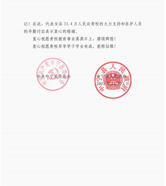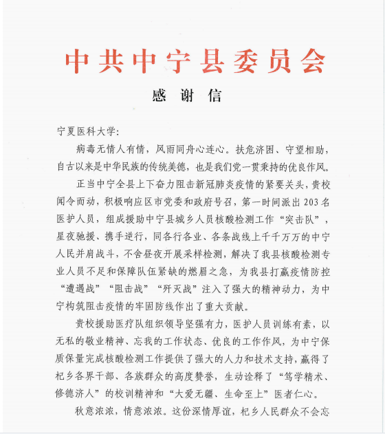 中宁县感谢信