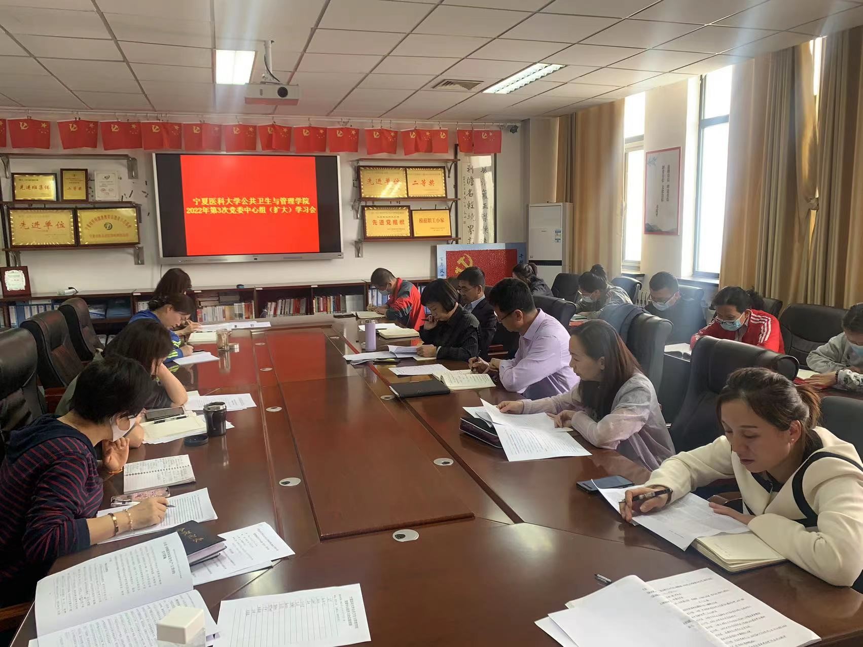 近期,公共卫生与管理认真学习领会习近平总书记在中国人民大学考察时重要讲话精神工作,认真落实梁言顺书记调研伟德向全区广大青年的寄语,联系工作实际,全面系统学,积极开展专题学,迅速掀起学习热潮。通过深入学习宣传贯彻,切实把全院党员干部师生的思想和行动统一到总书记重要讲话精神上来,勇毅前行,推动高水平公共卫生学院建设,推进学校高质量发展。
