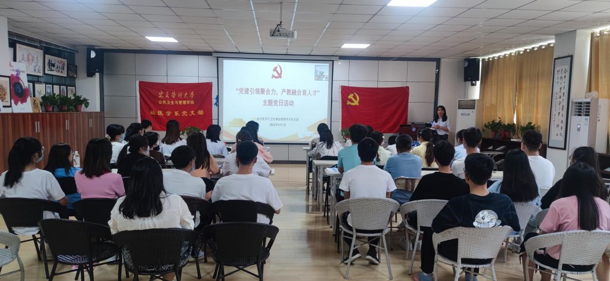 6月1日,学院社医学系党支部组织开展了“党建引领聚合力,产教融合育人才”主题党日活动。学校教师发展中心主任李燕,后勤处处长、公共事业管理产教融合项目负责人汤榕,公共卫生与管理学院副院长黄敏、社医学系全体教师以及2019级公共事业管理专业本科生参加了活动。