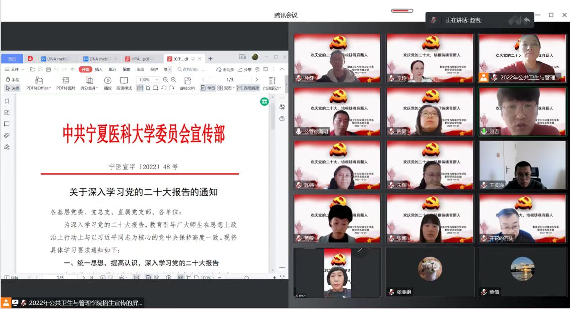 10月21日下午,公共卫生与管理学院职业卫生与环境卫生学系及职环学系党支部开展了党的二十大精神学习讨论活动,学院党委书记杨惠芳参加。