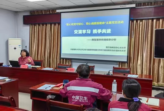 活动中,全体党员重温了入党誓词,疾控中心主任李天麟同志带领大家学习了二十大报告中的新观点、新论断和新思想,公共卫生与管理学院贺兰县流调突击队临时党支部书记张亚娟和贺兰县疾控中心副主任盛春宁同志分别对“9.20”新冠阳性典型案例活动轨迹进行分析和讲解,对于流调溯源工作如何做的更加精准到位提出了新的见解,为如何更加耐心细致开展“追阳”“挖根”行动,力争做到不留空白、管控不漏一人提供了新的工作思路。