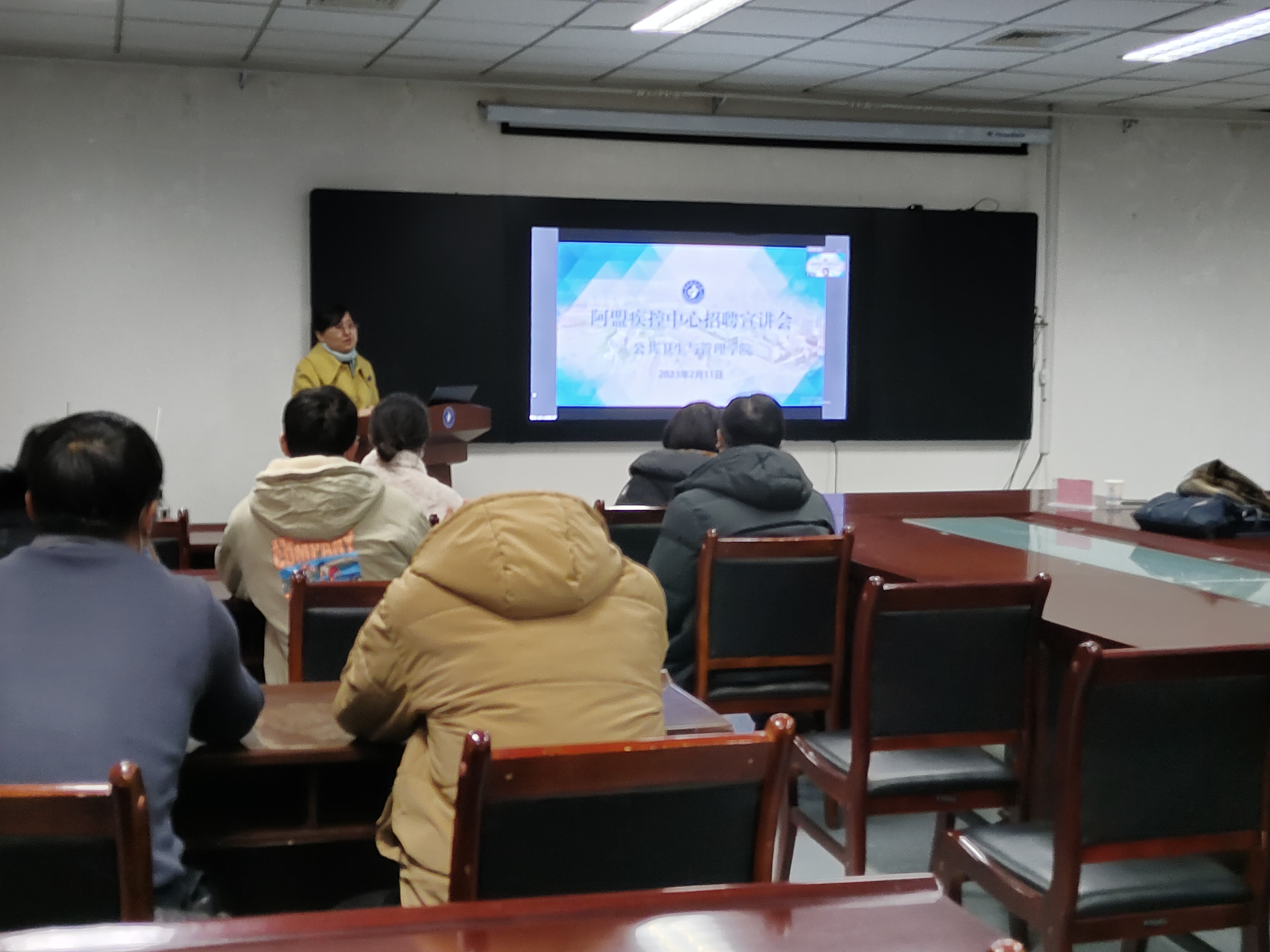 2月11日下午,公共卫生与管理学院邀请阿拉善盟疾病预防控制中心主任李洁一行3人利用学生实习间隙在学院会议室进行了招聘宣讲活动。学院书记杨惠芳及全体学工人员参加了此次招聘会。
