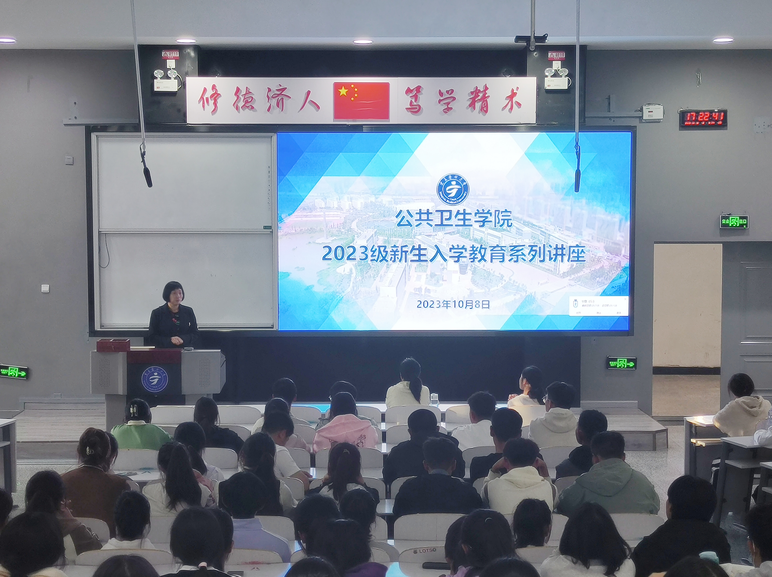 为落实立德树人根本任务,厚植新生爱国主义情怀,感悟传承宁医精神,提高学生专业认同感,10月8日、9日,公共卫生学院党委书记杨惠芳、院长张毓洪为2023级新生作了入学教育讲座。