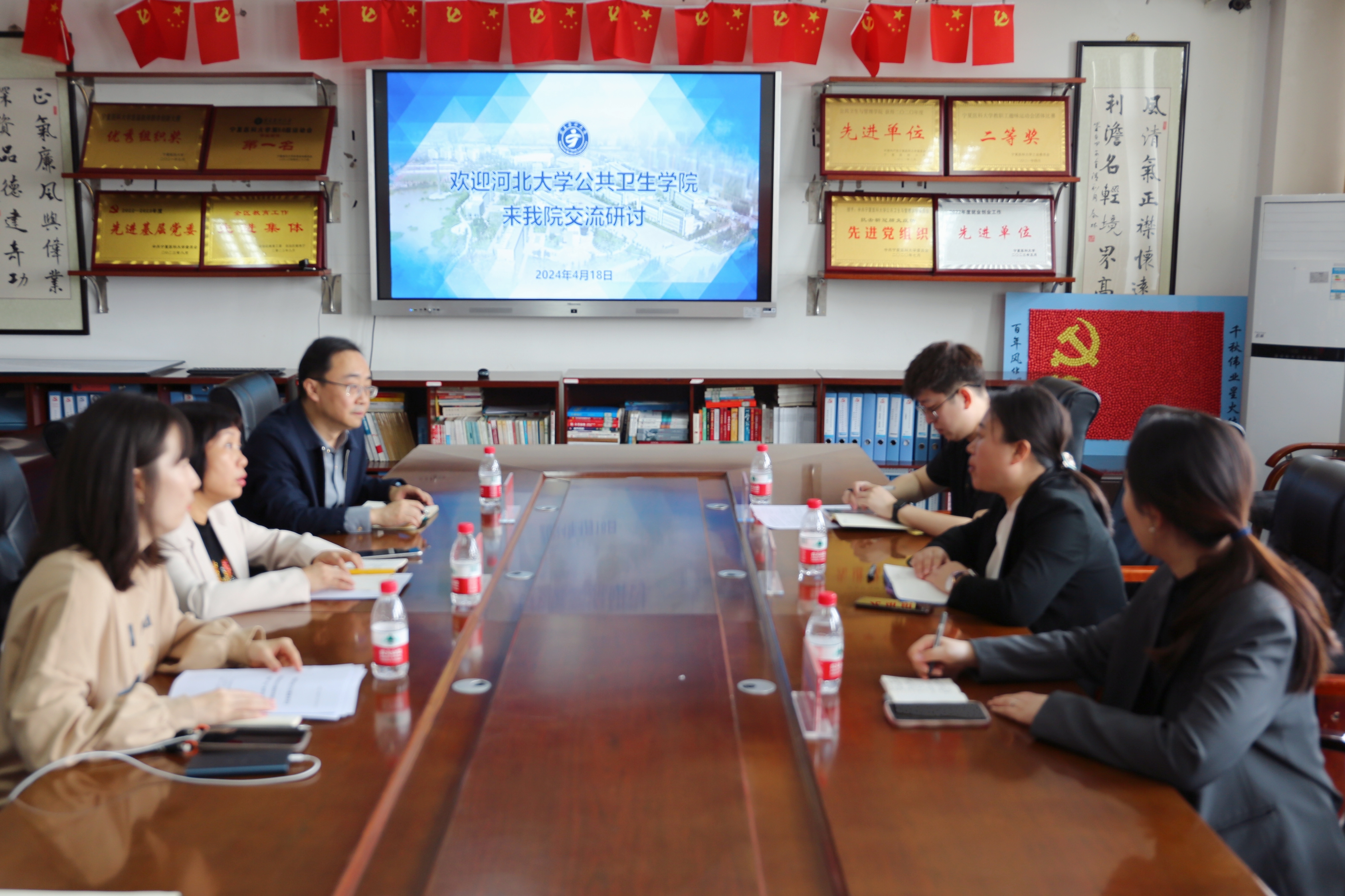 4月18日下午,河北大学公共卫生学院副书记陈凤娟一行来公共卫生学院调研交流。学校学生处副处长李亚红、公共卫生学院副书记韩炜陪同。