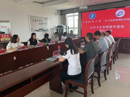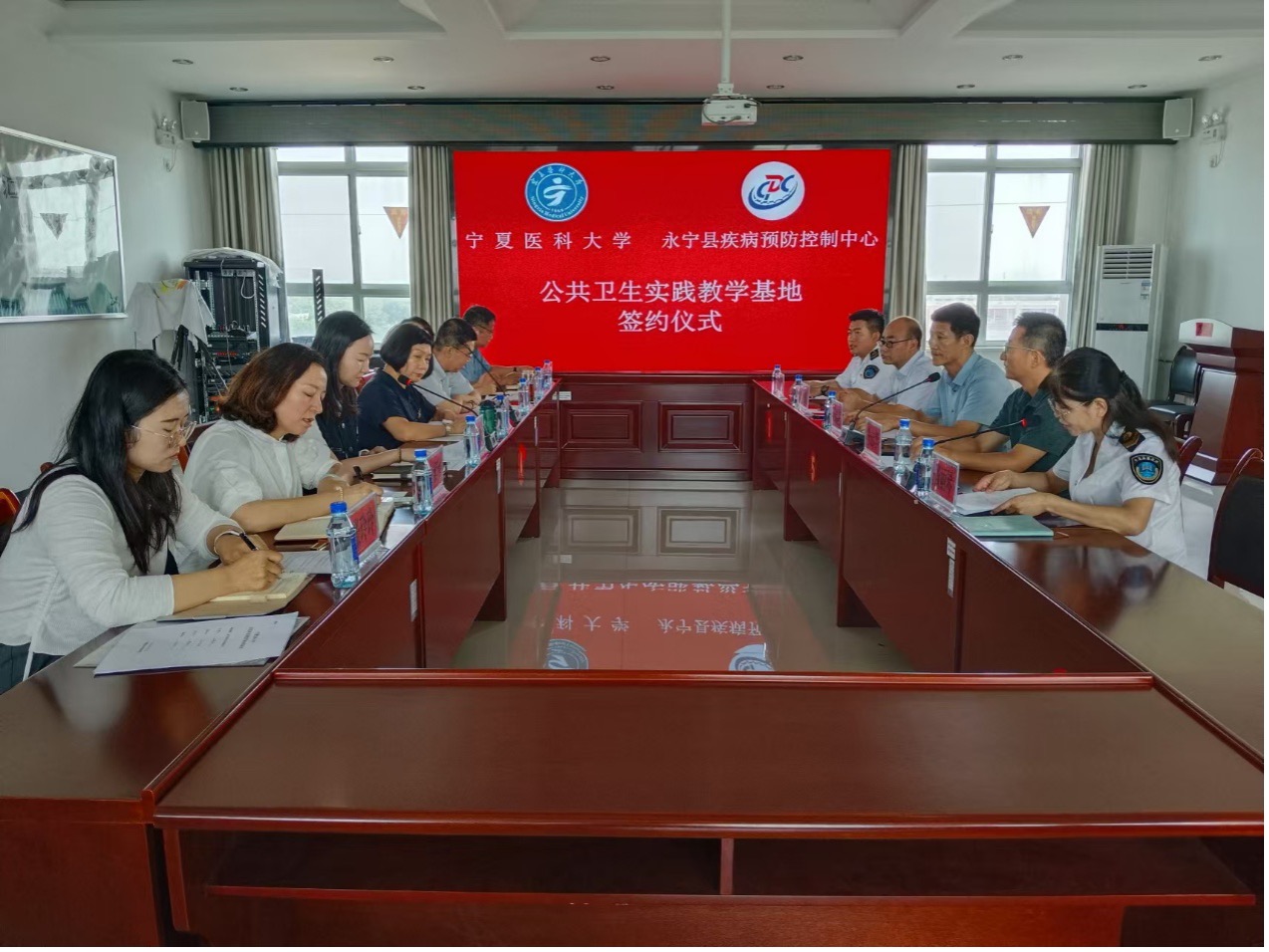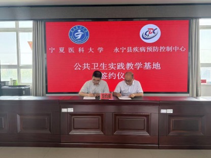 2025年7月14日,学校与永宁县疾病预防控制中心举行实践教学基地挂牌暨签约仪式。公共卫生学院党委书记杨惠芳,院长张毓洪及相关领导班子成员,永宁县卫健局局长杨志星,疾控局局长宋志学,学校教务处基地管理科副科长余莉,永宁县疾控中心主任任伟明及相关领导班子成员,疾控中心职工代表,实习学生参加。